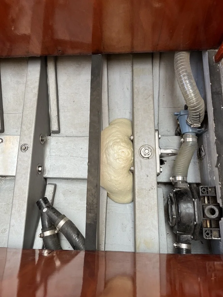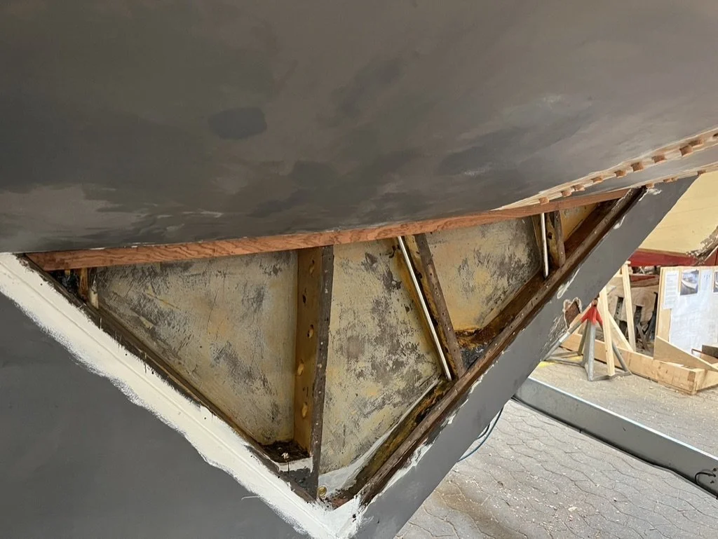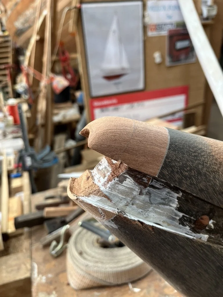 Here we go again… deadwood, unfortunately, needed to be replaced again in order to get to some of the bolts that needed replacing.