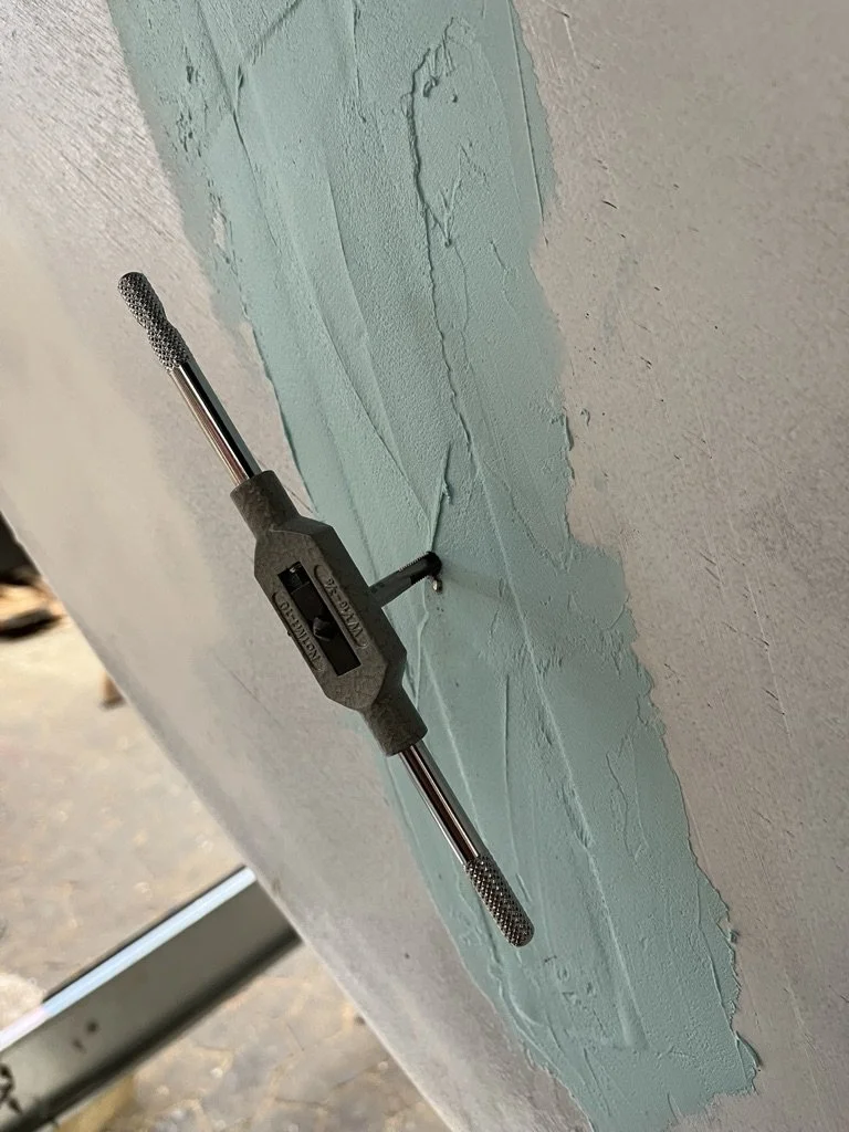 I drilled holes from above to pour the self-expanding 2-component PU foam and as you can see, the excess is returning through the pouring hole.