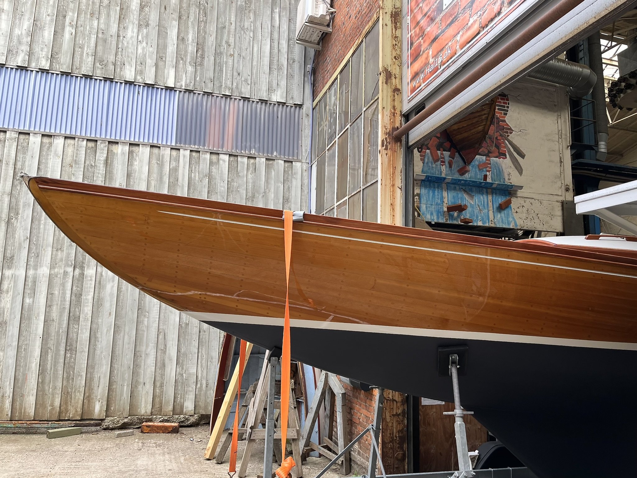 There are obvious discolorations of the fine Mahogany wood, but no rot. No need to replace the rudder, but there are some minor repairs that needed some attention.