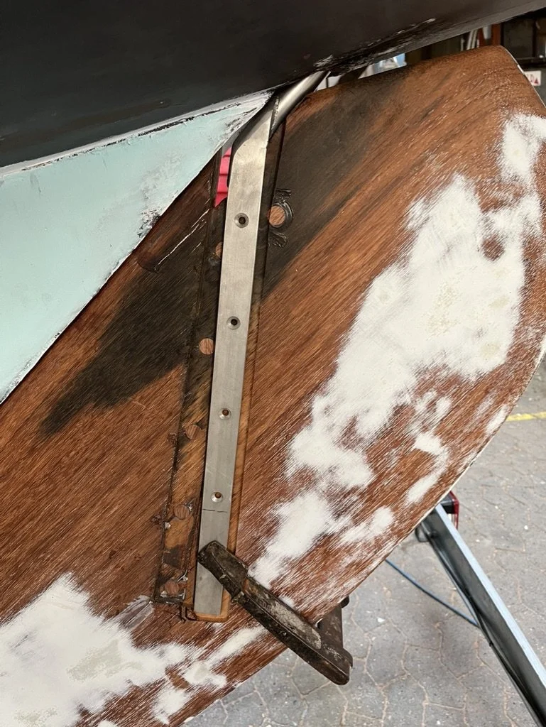 Also the bracket at the connecting point at the rear end of the rudder needs replacing. The bracket is mounted with through bolts.